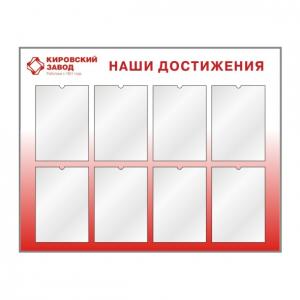 Уголок потребителя можно заказать у нас на производстве в Санкт-Петербурге со своим логотипом и пожеланиями по расположению и виду блоков, карманов, креплений.
